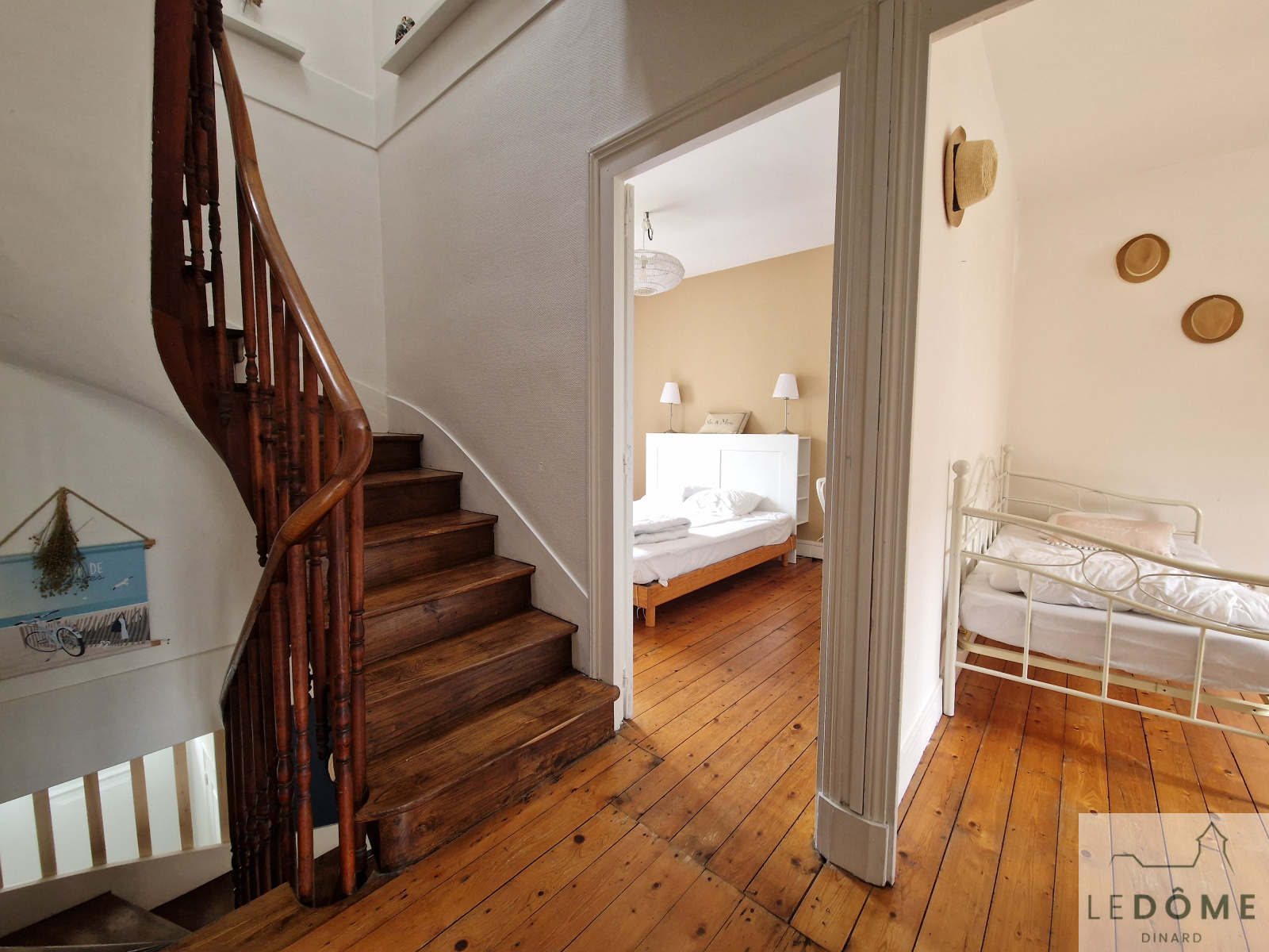 À l’étage, le palier dessert deux chambres (dont l’une bénéficie d'un dressing) et une salle d’eau avec machine à laver.