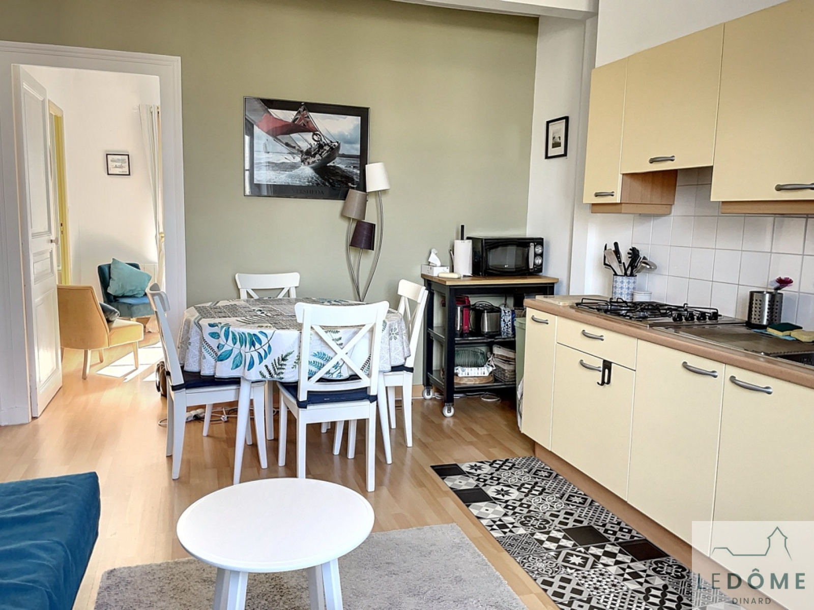 Dinard (35800)L'Agence Le Dôme vous propose cet appartement traversant de 31,99 m2 situé au 1er étage d'une petite copropriété en pierres, à proximité du marché. Il se compose d'une entrée sur pièce principale lumineuse avec coin cuisine équipé, une buanderie, une chambre avec placard, une salle d'eau avec WC. Une cave au sous-sol . L'appartement peut être vendu meublé .