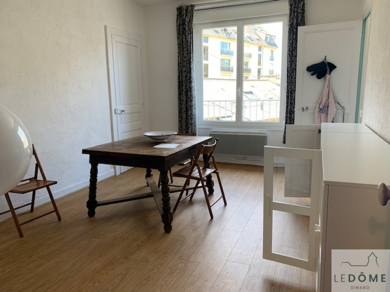 L'appartement lumineux avec son exposition ouest se compose : entrée, salle d'eau wc, salle à manger avec cuisine, salon, trois chambres. Toutes les huisseries sont en double vitrage avec volets roulants.